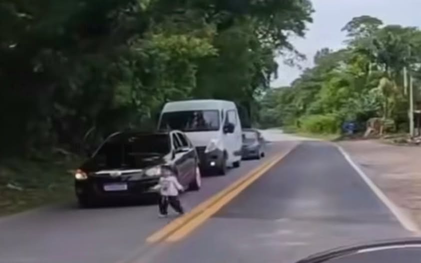 BEBÊ ENTRA EM RODOVIA MOVIMENTADA E MOTORISTAS EVITAM TRAGÉDIA.