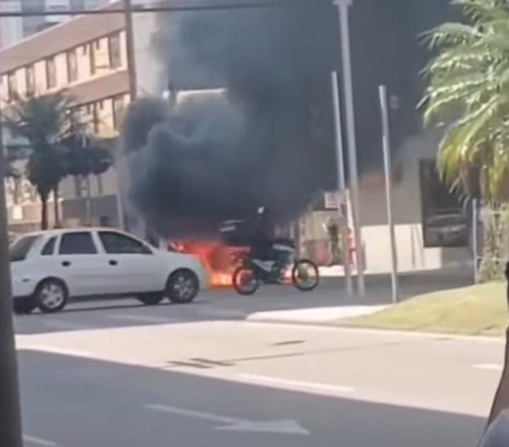 CARRO É DESTRUÍDO POR INCÊNDIO NO CENTRO DE CURITIBA; DUAS PESSOAS ESCAPAM