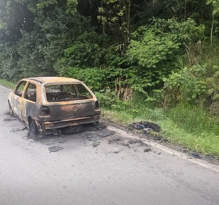 CARRO INCENDIADO CONTINUA OBSTRUINDO A PR-092 EM RIO BRANCO DO SUL.