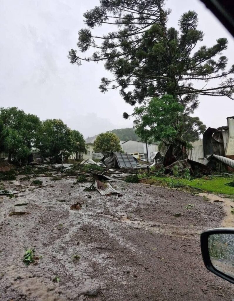 VENDAVAL DESTRÓI ESCOLA E ATINGE AO MENOS 20 IMÓVEIS EM COMUNIDADE RURAL DE FARROUPILHA.