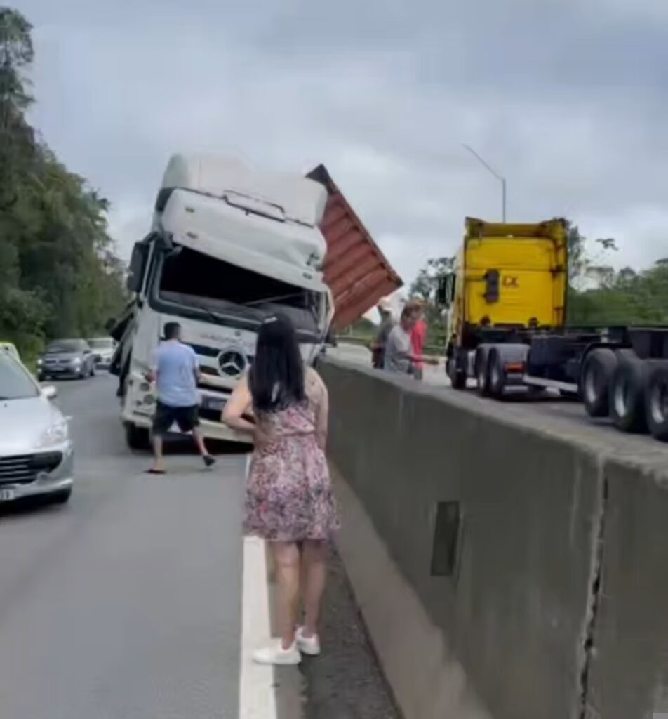 ACIDENTE COM CAMINHÃO COM CONTAINER COMPLICA TRÂNSITO NA BR-277, SENTIDO LITORAL