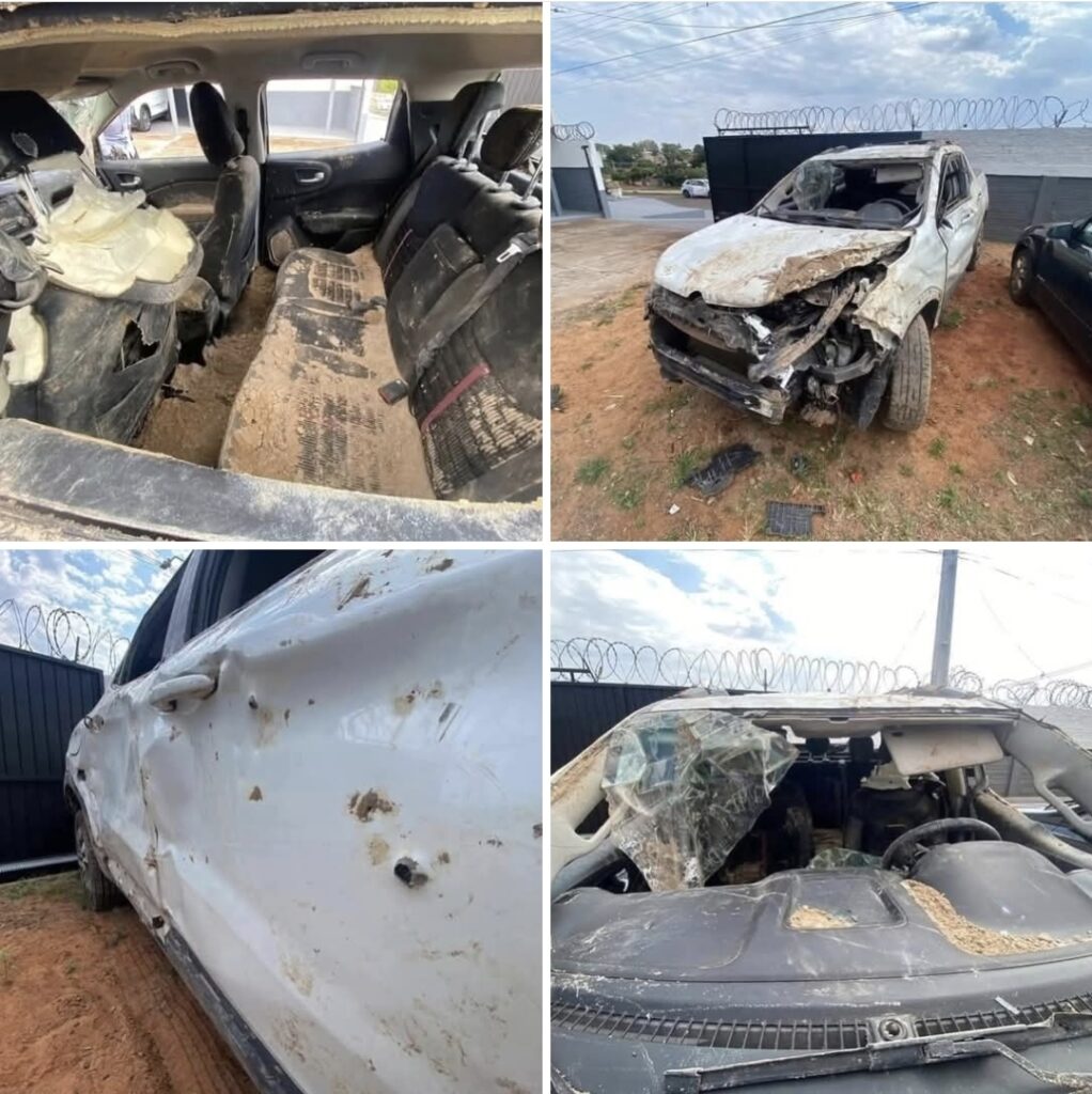 O automóvel dos cobradores paulistas desaparecidos em Icaraíma foi levado ao pátio da Delegacia de Polícia Civil local após ser periciado. O veículo apresenta diversas perfurações, aparentemente de arma de grosso calibre, nas partes frontais e laterais. Também foram encontradas manchas de sangue no interior do carro. Fonte: Folha do Valle