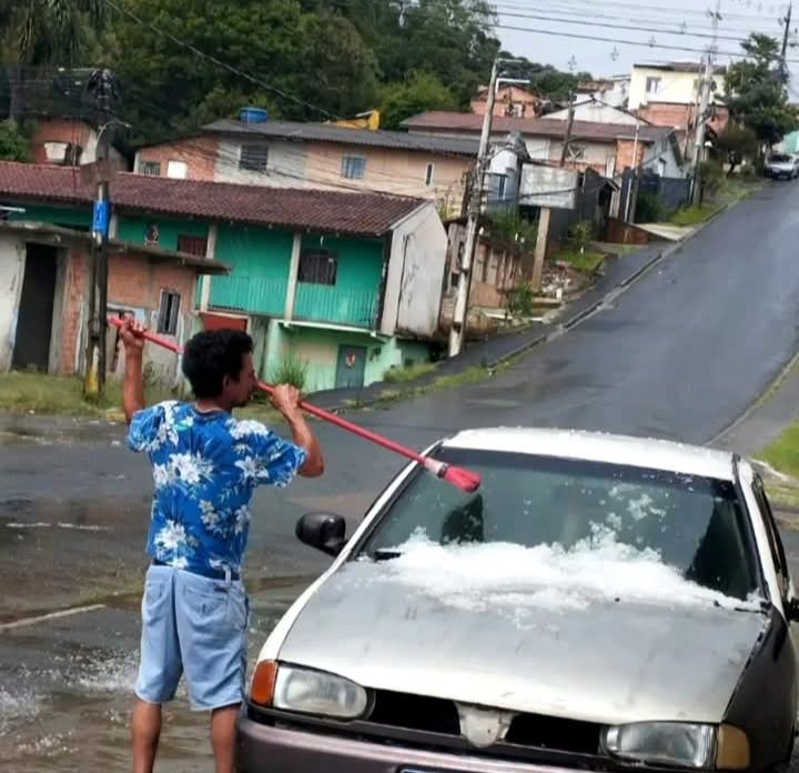 Na tarde de sábado (22), Almirante Tamandaré foi atingida por uma intensa chuva de granizo que cobriu ruas, calçadas e quintais com uma camada de gelo. O fenômeno causou pequenos danos em telhados e estruturas frágeis, sem feridos. Moradores registraram vídeos brincando no granizo e usando-o para gelar bebidas. No bairro Tranqueira, Jaqueline Pereira fotografou uma nuvem funil que durou poucos segundos antes da chuva. A Defesa Civil alerta para buscar abrigo seguro durante granizo e evitar locais perigosos. O evento, embora rápido, surpreendeu a população da região metropolitana com cenas marcantes.
