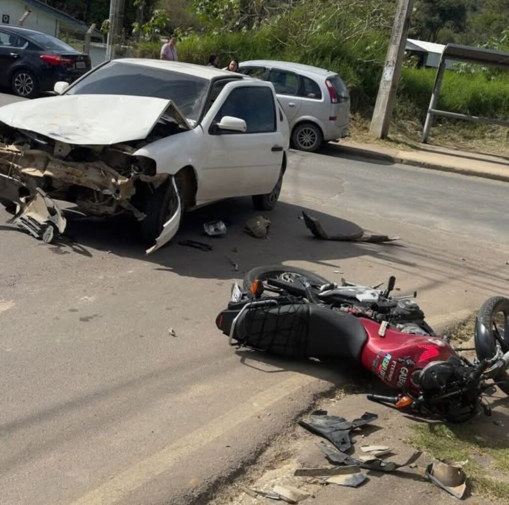 Acidente em Itaperuçu: motociclista é arremessado sobre muro após colisão com carro