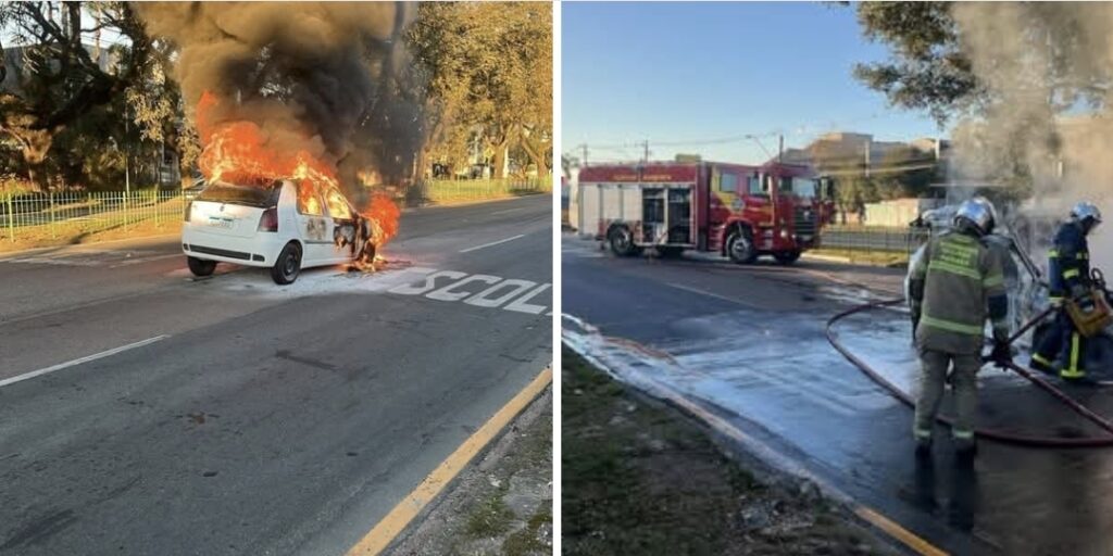 CARRO PEGA FOGO E É DESTRUÍDO EM POUCOS MINUTOS EM CURITIBA