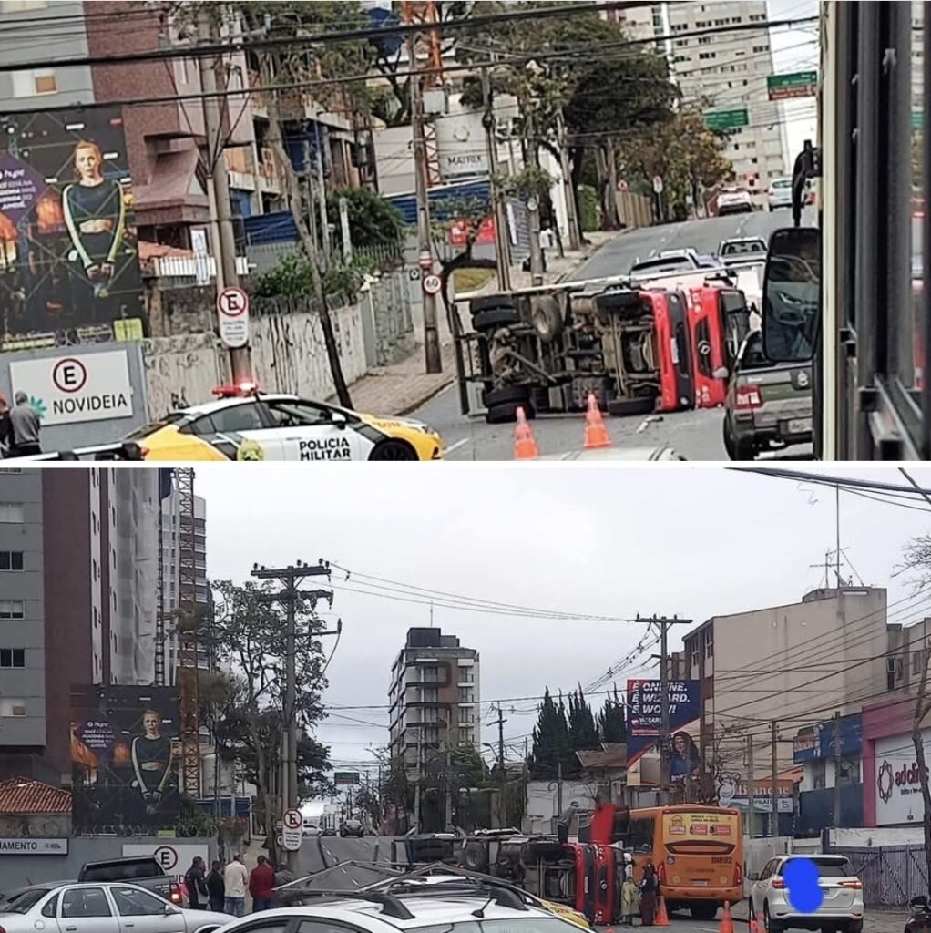 MOTORISTA ALCOOLIZADO PROVOCA ACIDENTE E CAMINHÃO TOMBA EM CRUZAMENTO DE CURITIBA