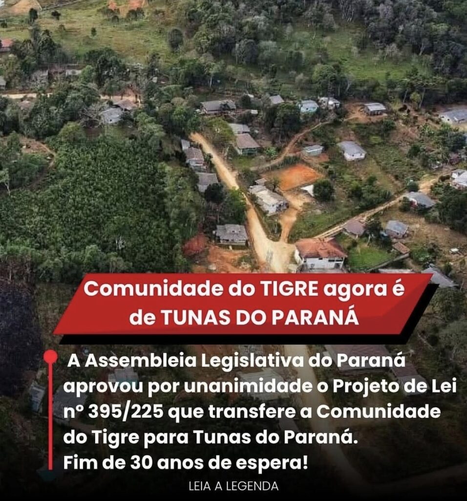 O Projeto de Lei nº 395/2025, proposto pela deputada Maria Victoria, foi aprovado em dois turnos, alterando a divisa entre Tunas do Paraná e Cerro Azul. Com a mudança, Tunas ganha 30 km² de território, oficializando a inclusão da comunidade do Tigre no município. A conquista, que resultou de anos de esforço, diálogo e colaboração […]