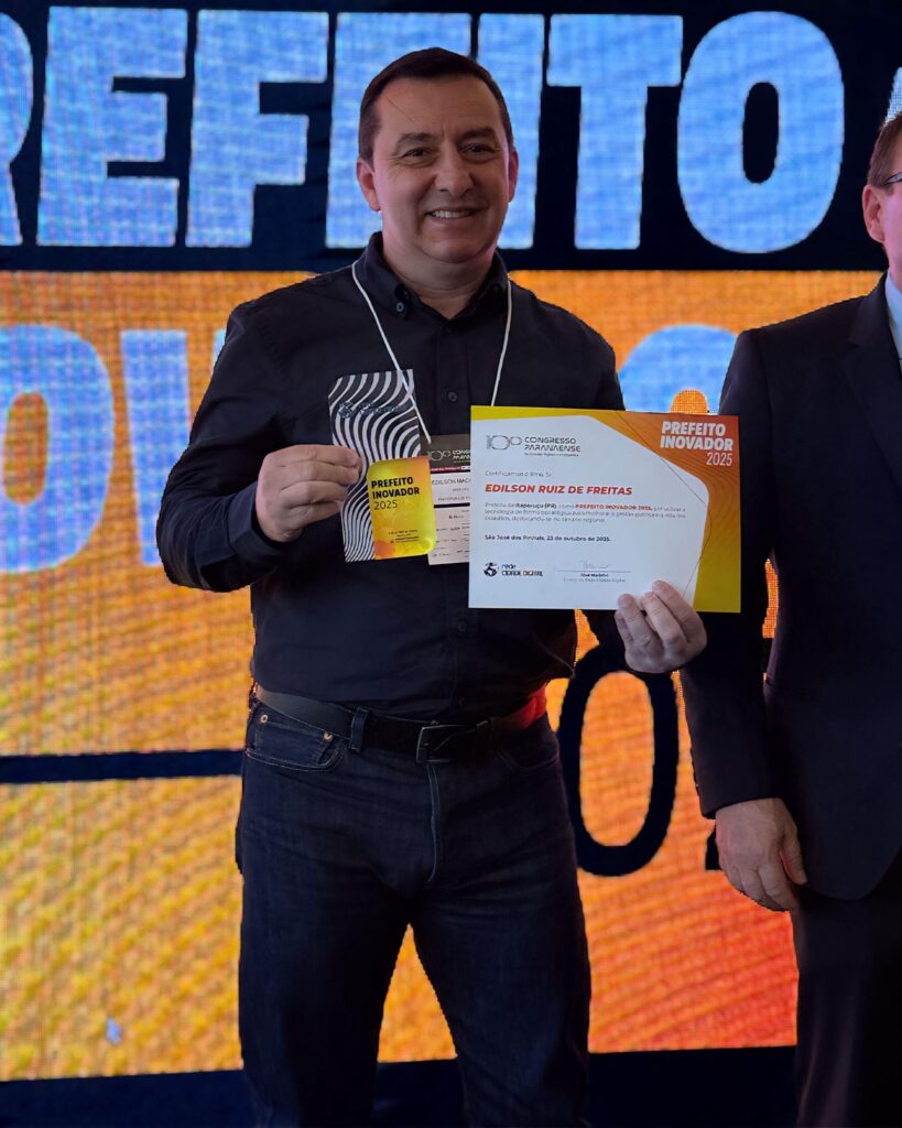 O prefeito Edilson Macadame recebeu o prêmio Prefeito Inovador 2025, concedido pela Rede Cidade Digital durante o Congresso Paranaense de Cidades Digitais e Inteligentes. A premiação resultou de uma análise que avaliou projetos de tecnologia e inovação das prefeituras, com base em informações divulgadas em sites e redes oficiais. O prefeito ressaltou o orgulho em […]