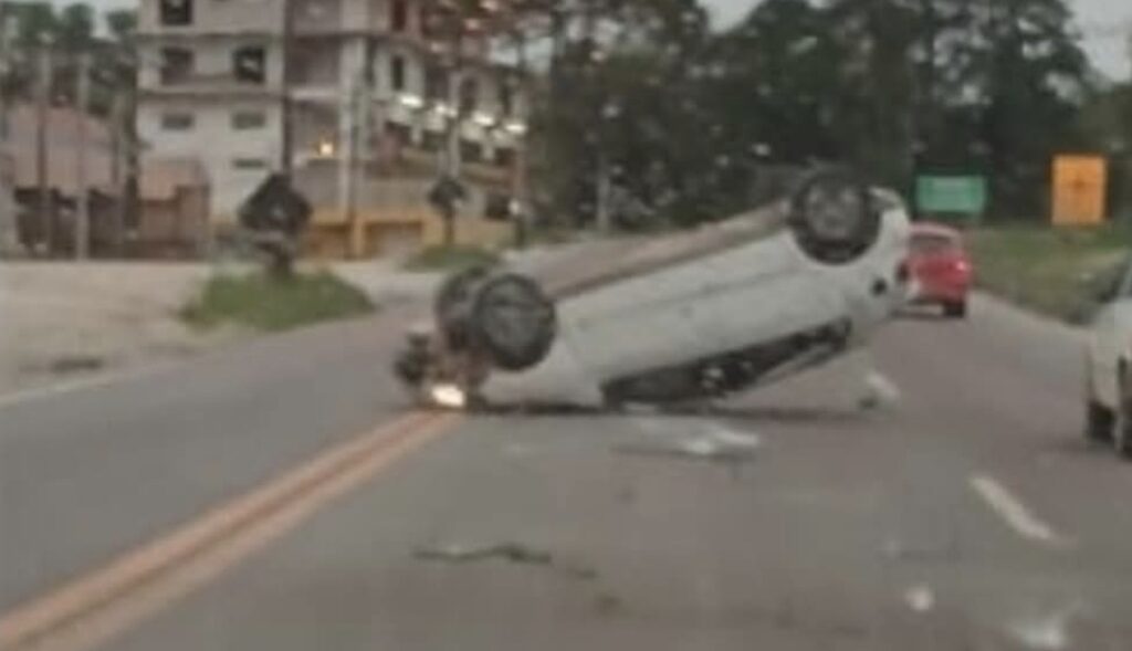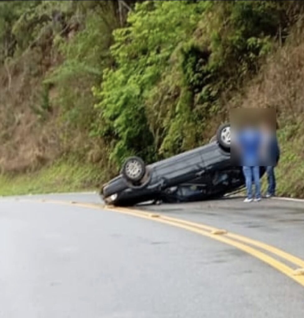 Um carro capotou na manhã desta quinta-feira (9) na “Curva da Brascal”, em Rio Branco do Sul. Apesar do acidente, ninguém se feriu. O trânsito ficou lento enquanto o atendimento era realizado no local. Fonte: Jornal Rio Branco