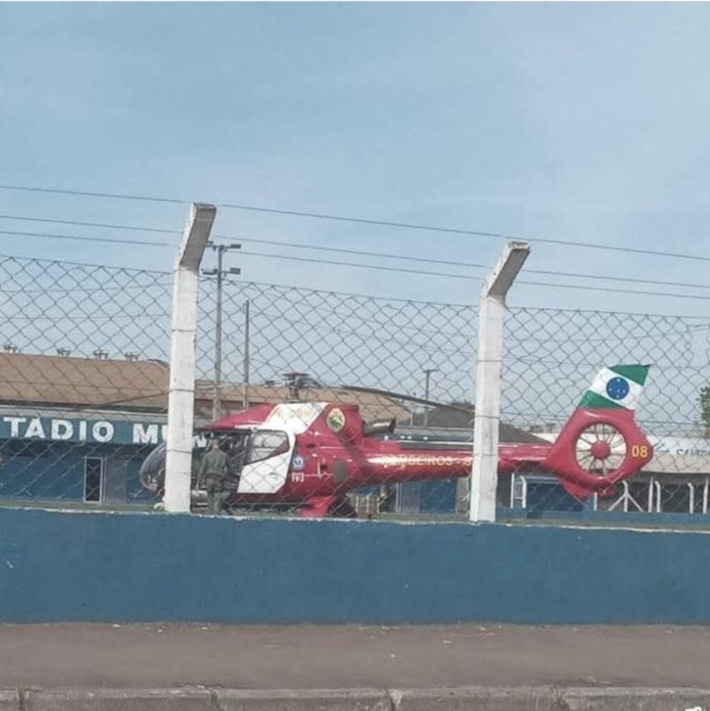 O helicóptero da polícia militar chegou a Rio Branco para resgatar um senhor e transportá-lo com urgência para um hospital em Curitiba. Fonte: Jornal Expresso