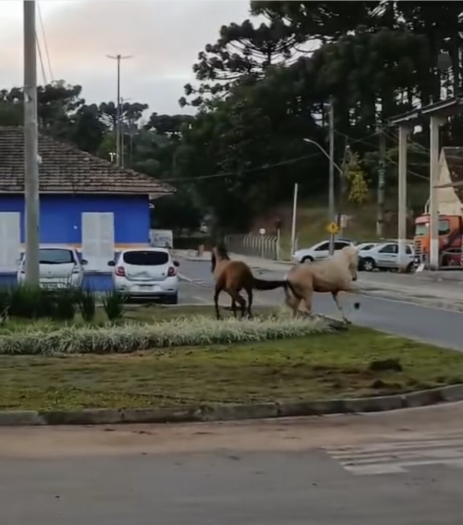 Um cavalo solto foi visto pela manhã na avenida Derson Costa, próximo ao Corpo de Bombeiros, em Rio Branco do Sul. O animal causou danos ao jardim recentemente plantado pela prefeitura. As autoridades alertam os donos para que mantenham os cavalos em locais fechados, visando evitar acidentes. Fonte: Tribuna do Povo