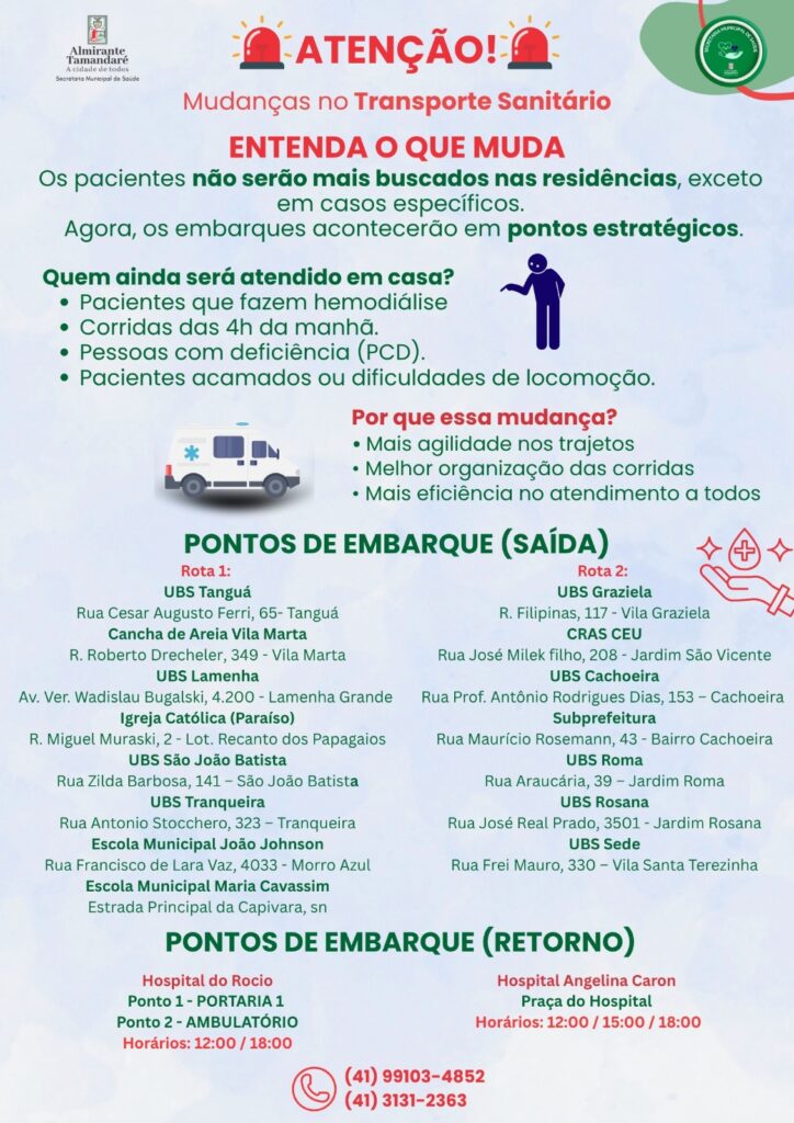 🚨 Atenção Moradores de Almirante Tamandaré! Mudanças no Transporte Sanitário: Entenda o que muda a partir de agora A Prefeitura de Almirante Tamandaré anunciou importantes mudanças no Transporte Sanitário do município. A principal alteração é que os pacientes não serão mais buscados em casa, exceto em casos específicos. Agora, os embarques acontecerão em pontos estratégicos […]