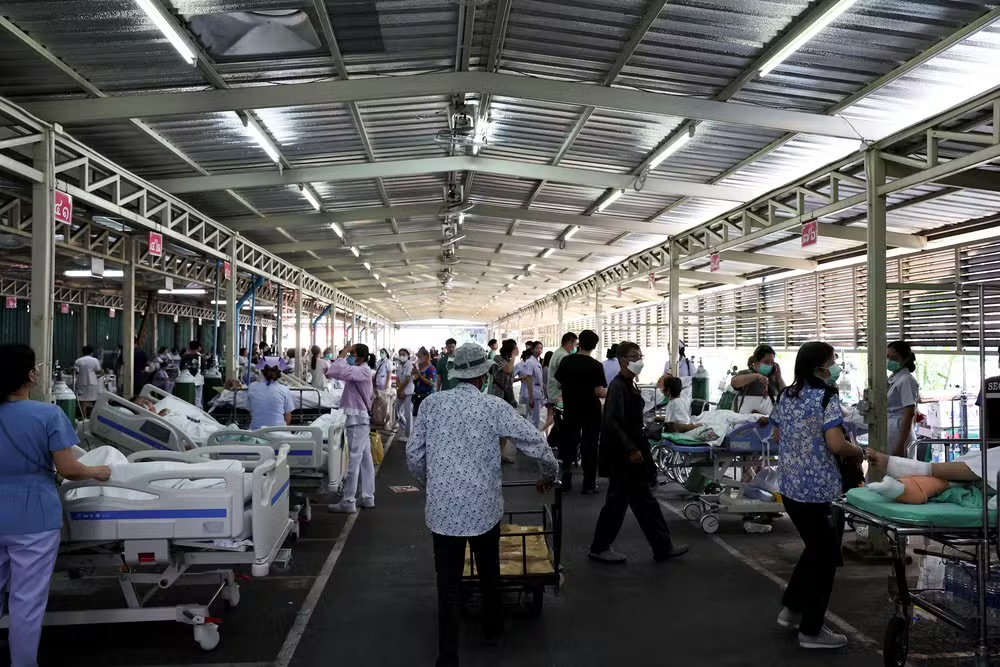 Na capital tailandesa, Bangcoc, o terremoto foi sentido com intensidade, levando à evacuação de prédios e hospitais. Um edifício em construção, com mais de 30 andares, desabou em um dos distritos da cidade, deixando mortos e feridos. Equipes de resgate seguem trabalhando para localizar possíveis sobreviventes nos escombros.